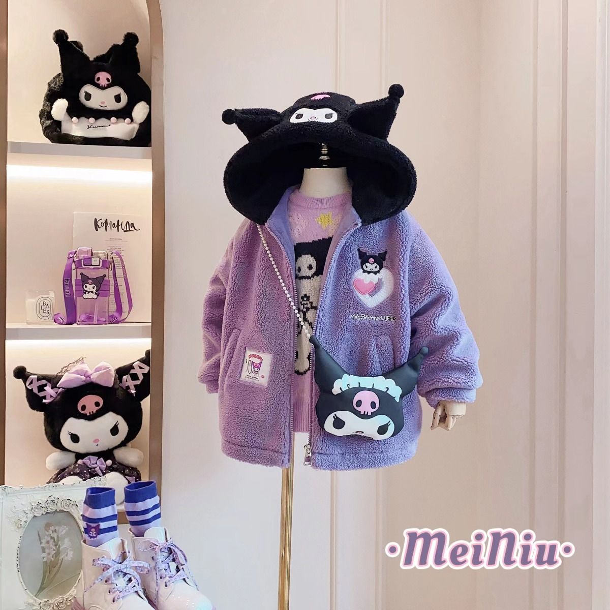 女童庫洛米毛毛衣2025新款冬季加絨加厚卡通休閒外套【贈送兒童髮飾髮繩16件】 NT$ 1299