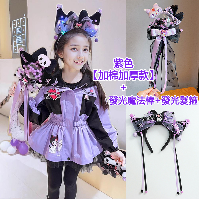2025秋季新款兒童洋氣時尚庫洛米衝鋒衣,春秋/加棉加厚休閒風衣外套【贈送兒童髮飾髮繩16件】 NT$ 1199