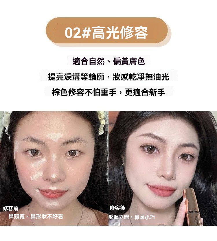 第 2 件 : 兩頭修容棒兩用高光啞光鼻影側影臉部提亮陰影筆臥蠶新手初學者