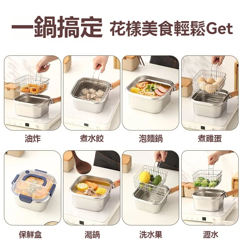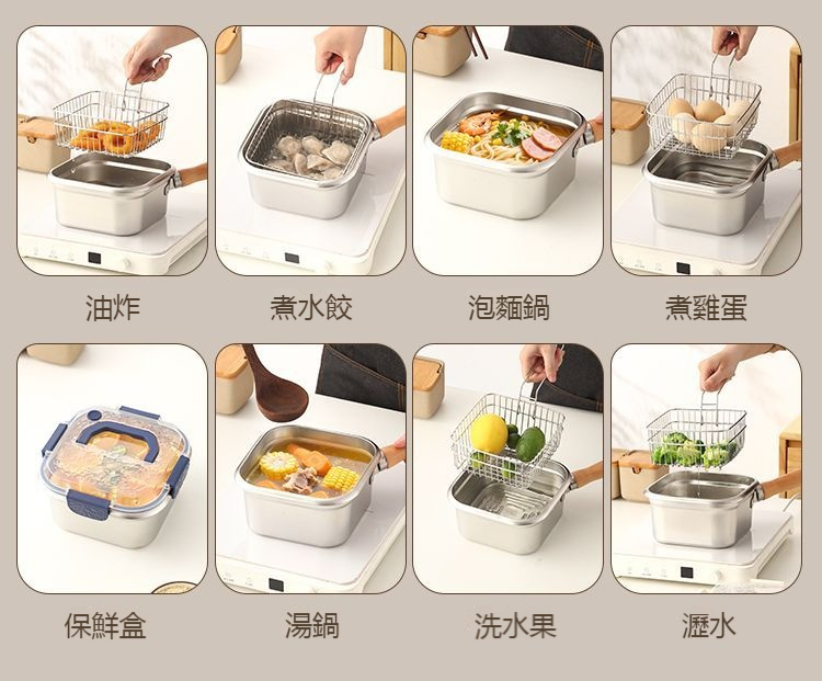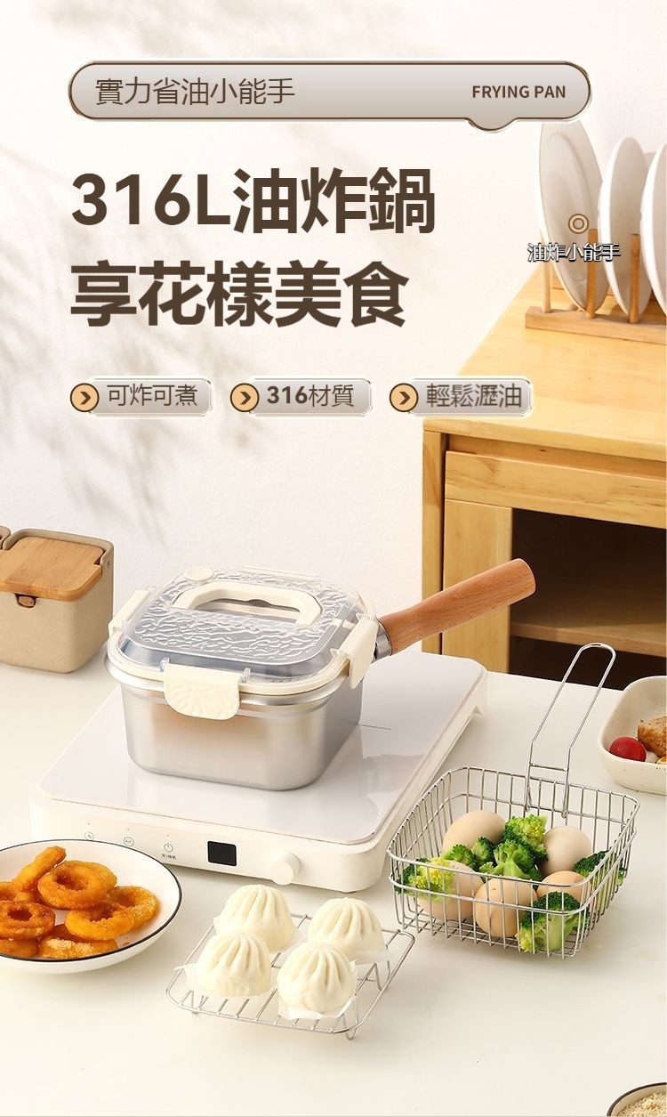 第 1 件 : 多功能不鏽鋼炸鍋套裝【不鏽鋼鍋身、透明密封蓋、拆卸式手柄、蒸架、油炸籃、夾子】,不挑爐灶,可進烤箱,可拆卸收納,一鍋搞定油炸、保鮮盒、蒸鍋、湯鍋、瀝水、洗水果、煮水餃、煮雞蛋、泡麵鍋等