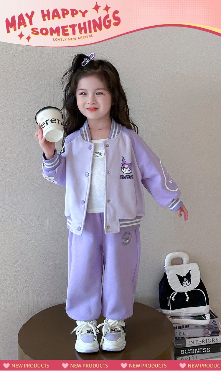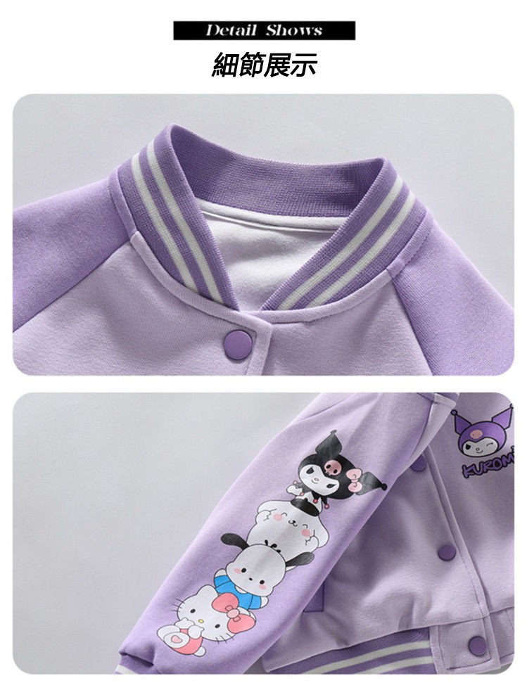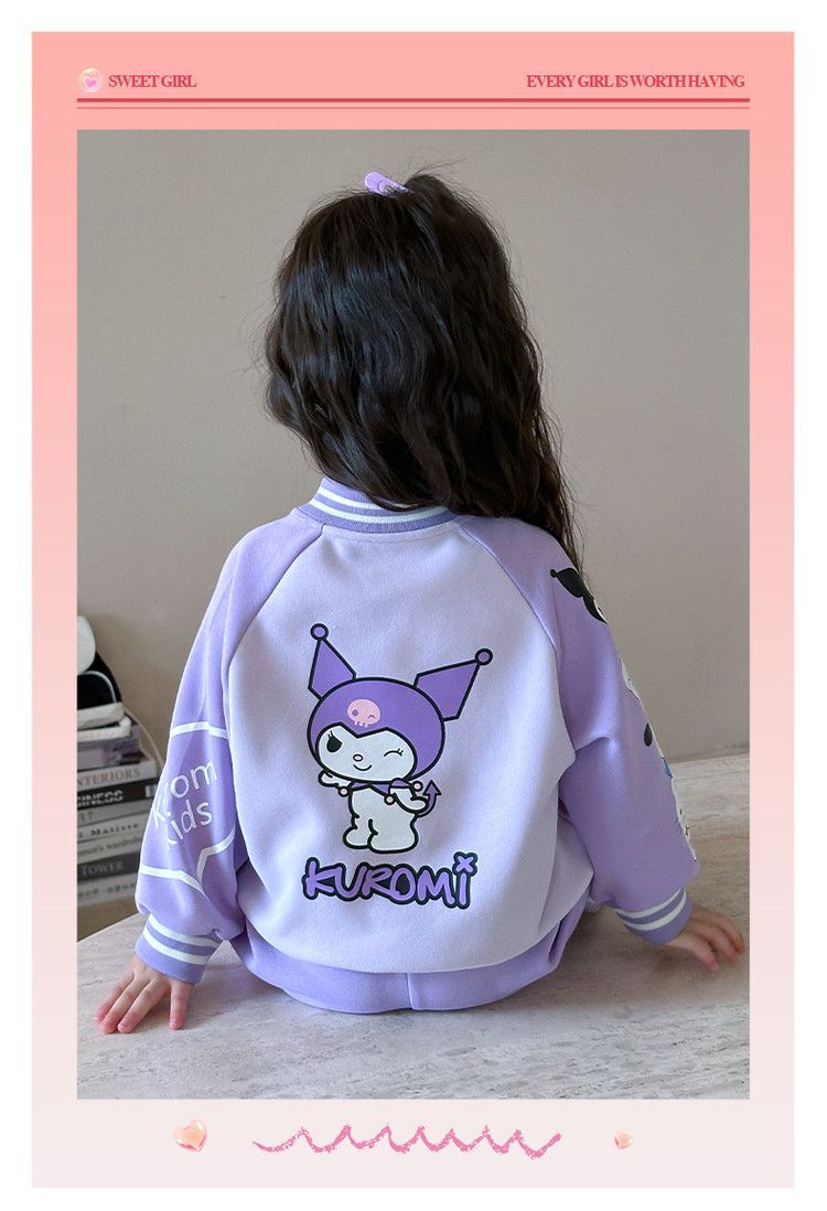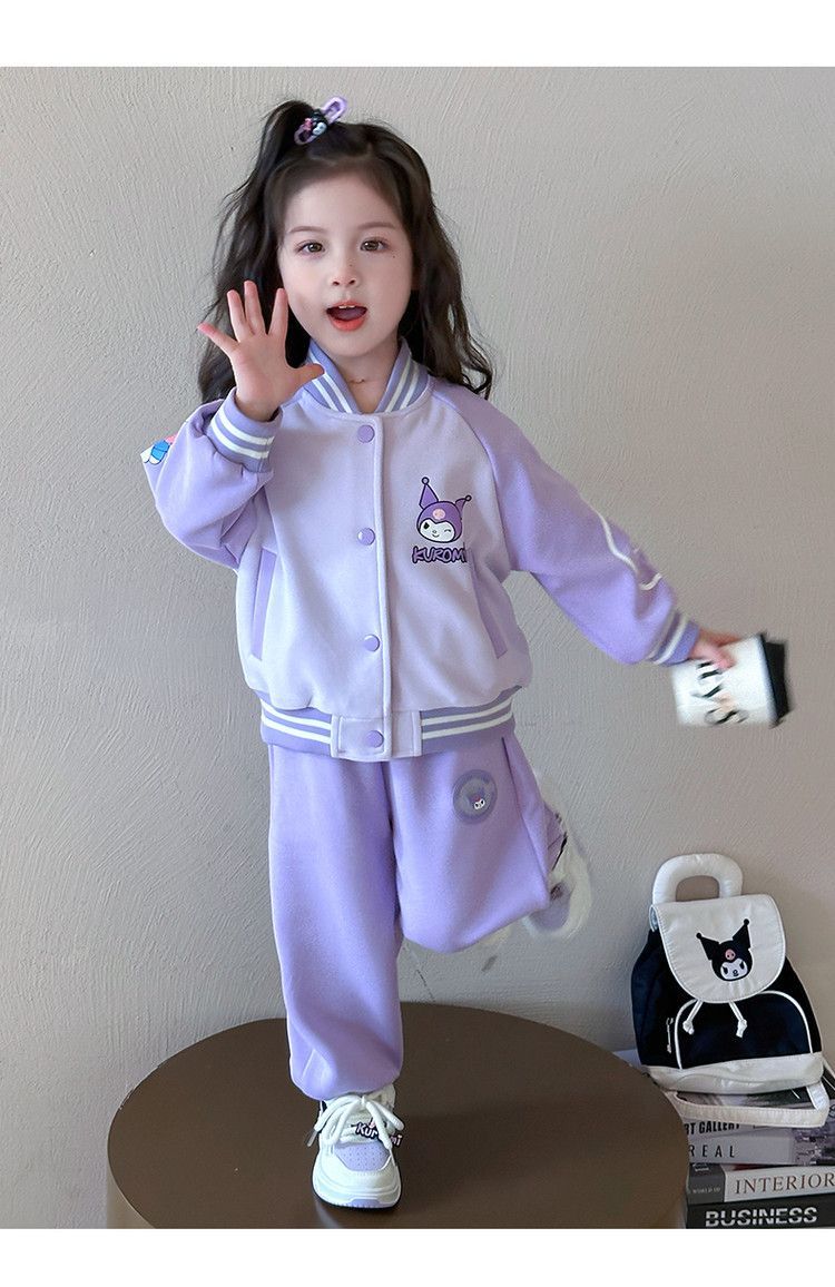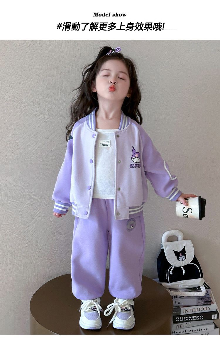 2025年新款兒童休閒可愛卡通庫洛米棒球外套+褲子兩件套裝,紫色、粉色,90-140碼 NT$ 1299