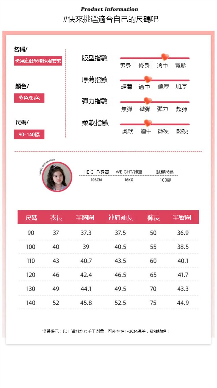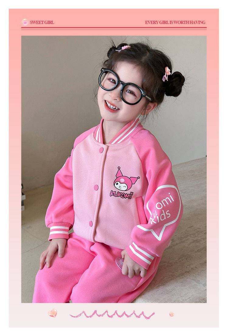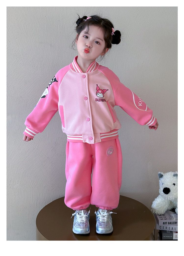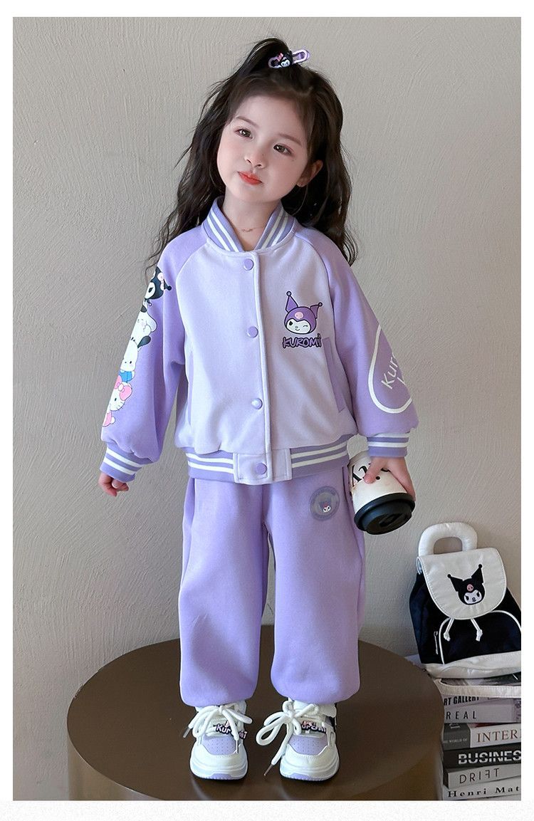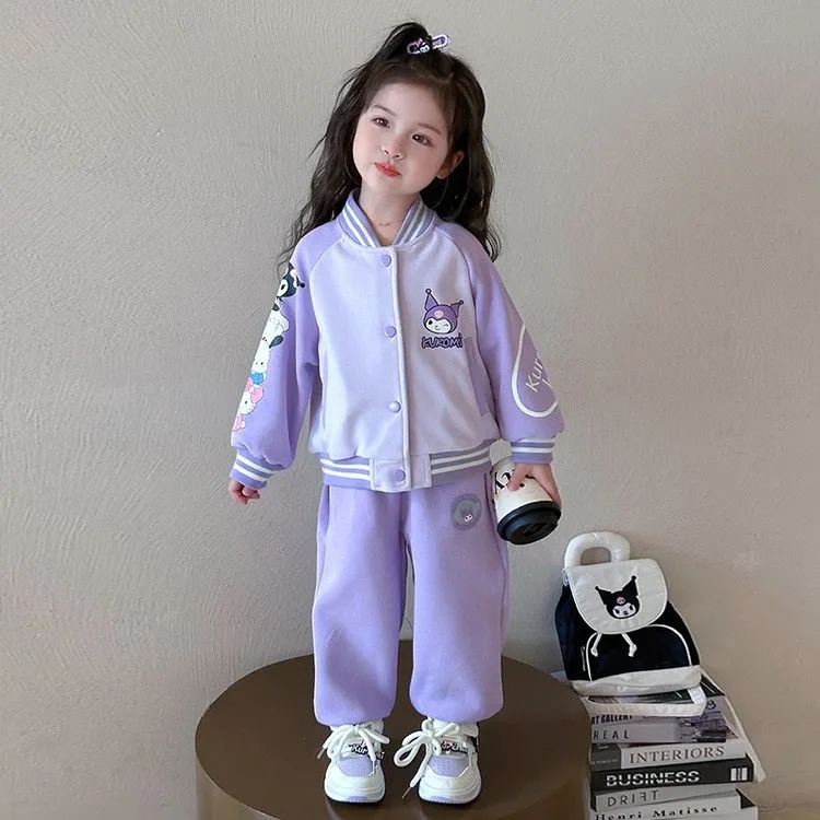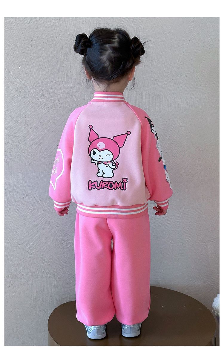2025年新款兒童休閒可愛卡通庫洛米棒球外套+褲子兩件套裝,紫色、粉色,90-140碼 NT$ 1299