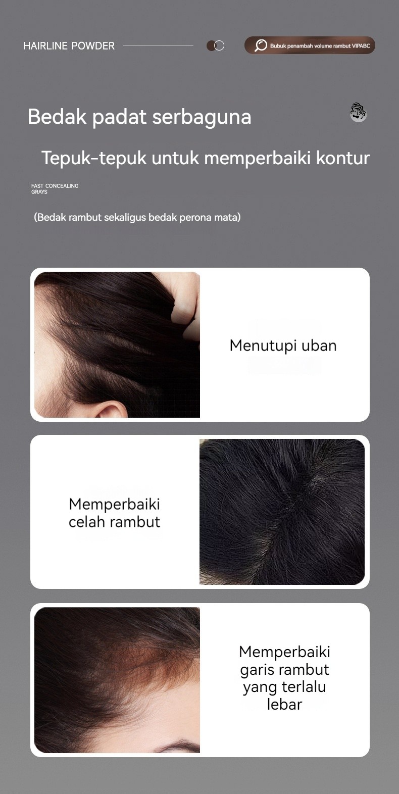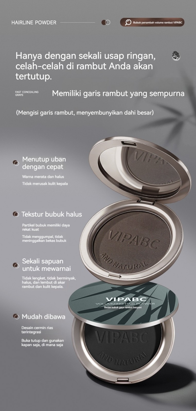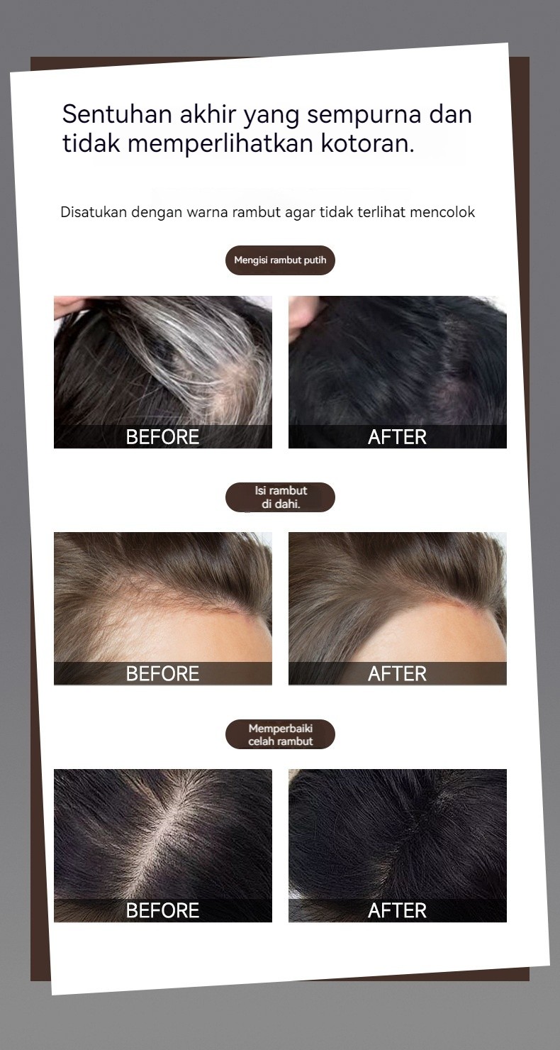 3 buah : 【Beli 1 Gratis 1 - Nilai Hebat!】Bedak penambah volume rambut ini memberikan lapisan tipis, memperbaiki warna, dan menutupi uban. Tahan air, tahan keringat, dan tahan lama, bedak ini menambah volume dan secara visual meningkatkan ketebalan rambut untuk tam